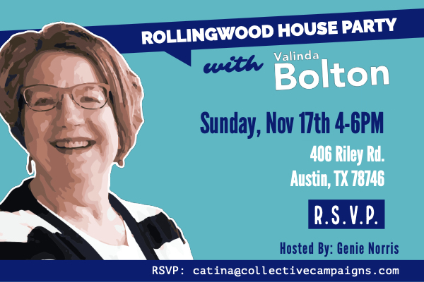 Donate online or RSVP to Catina at catina@collectivecampaigns.com or 512-567-8377