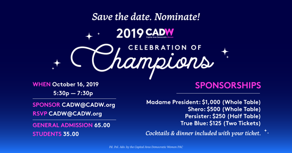 This is CADW's annual Celebration of Champions, which will be an amazing event! You won't want to miss out on celebrating these three amazing people!