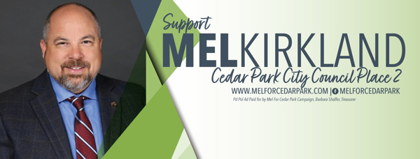 I am re-running for Cedar Park City Council, Place 2. I have lived in Cedar Park for over 17 years. I am an entrepreneur and own my own Landscape Consulting firm based in Cedar Park, serving Cedar Park and the Greater Austin Region.  Since moving to Cedar Park, I have been actively involved in my community. I served for 7 years on the city's Tourism Advisory Board (serving 2 years as chair). I then served 3 years on the Cedar Park Community Development 4B Corporation and am currently serving my second term on City Council. While on Council I have served as the Mayor Pro-Tem, I currently serve on the Capitol Area Council of Governments, The Brushy Creek Regional Water Utility Board, and Council’s Economic Development sub-committee.