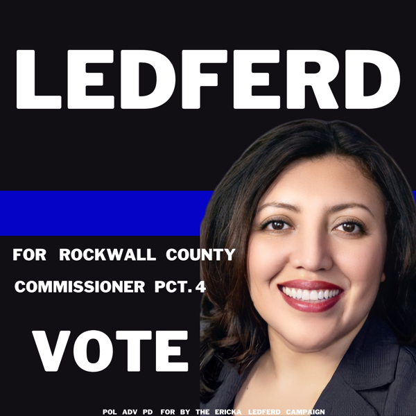 Pol. Adv. Paid for by Ericka Ledferd for Rockwall County Commissioner Pct. 4
