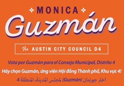Pol. Ad. paid for by Monica Guzmán campaign. The Honorable Jackie Goodman, Treasurer. This campaign has not agreed to comply with the contribution and expenditure limits of the Austin Fair Campaign Ordinance.