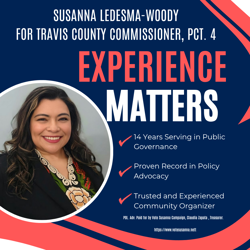 POL. Adv. Paid for by Vote Susanna Campaign, Claudia Zapata , Treasurer.