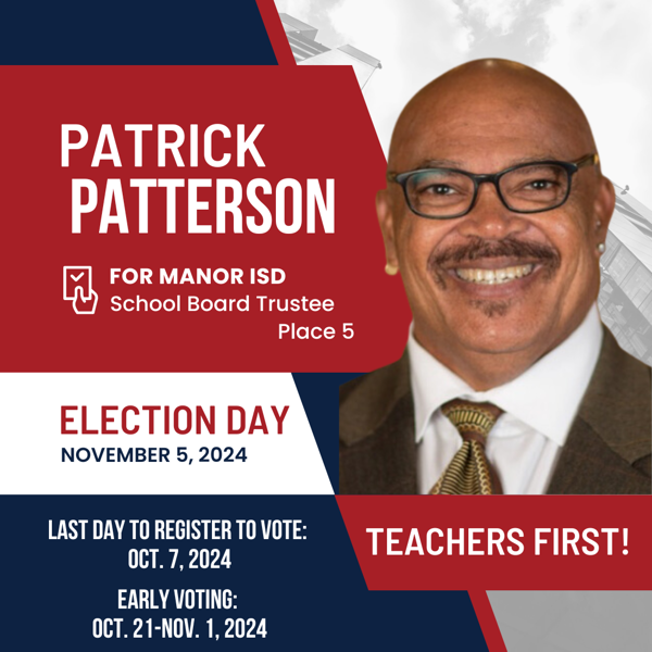 I am running for Manor ISD Board of Trustees, Place 5, to put 'Teachers First' and ensure our schools are places of pride for the entire community. I am commited to supporting high-quality, well-paid teachers, fostering strong leadership, and restoring independence to our district. This is essential for the success of our students.