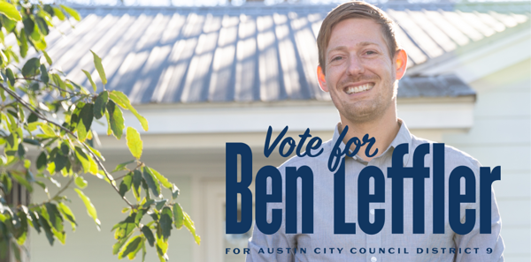 Join us for happy hour at Bouldin Acres (2027 S. Lamar) on Wednesday, June 22nd from 5-7 pm to support Ben's campaign for Austin City Council, District 9.