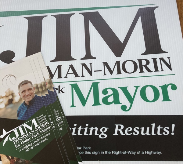 James Penniman-Morin for Cedar Park. Sarah Penniman-Morin, Treasurer.